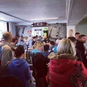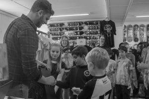 Noon, Saturday 20th October 2018, Matt’s son Istas cut the ribbon to officially open Sk8 or Die. A great turnout, I doubt a slippery eel could have fit in the shop, it was that packed.