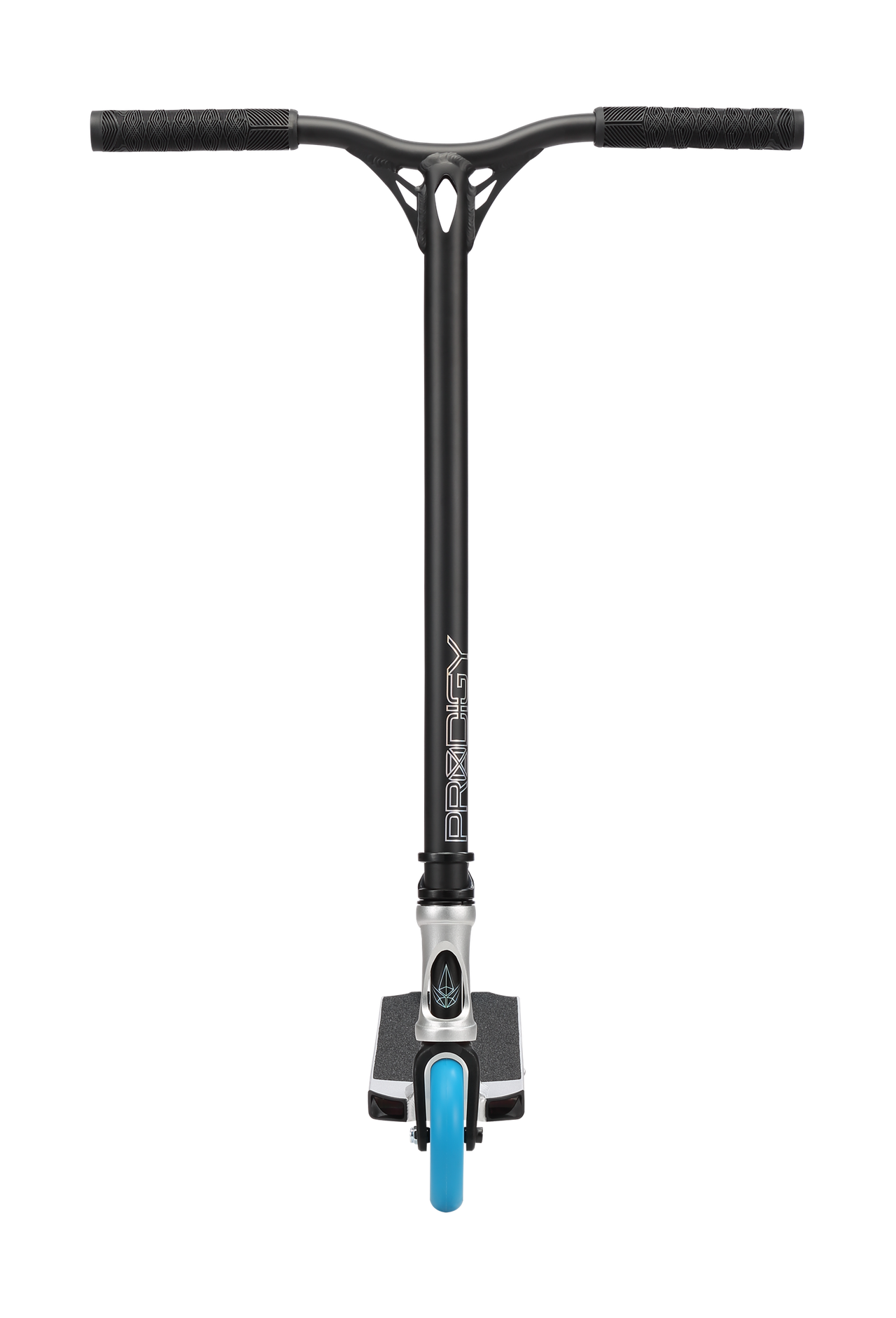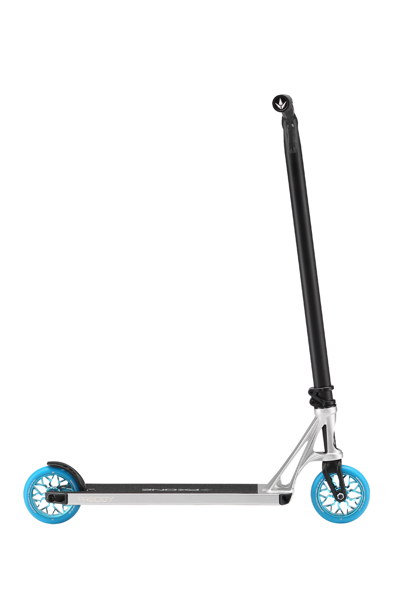 The Prodigy XONE-PX ONE for short is the eleventh series in the PRODIGY line, built upon 10generations and 14years of professional-level complete scooters.The massive upgrades from PX continue including -Extech extrusion with its stealth lower profile, wider internal walls, boxier construction featuring a high responsive concave.The deck is still with its wider dimensions 5” W x 19.5” L The PX Headtube has been refined maintaining its increased contact with the deck with a now added durable anchoring weld to ensure this deck can take anything you throw at it. , Grip tape with increased grit count, Durable nylon deck plugs and V2 Nylon brake system, IHC LOW stack headset compression cap with pro level bearings to keep you spinning with all of it rolling on the SECTOR 120mm x 26mm PU wheels 86A.